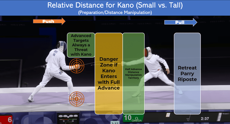 Thus, in addition to Meyer’s distances is Fenoul’s idea of how much distance you intentionally cede to the opponent to let them enter and set yourself up for a successful touch.